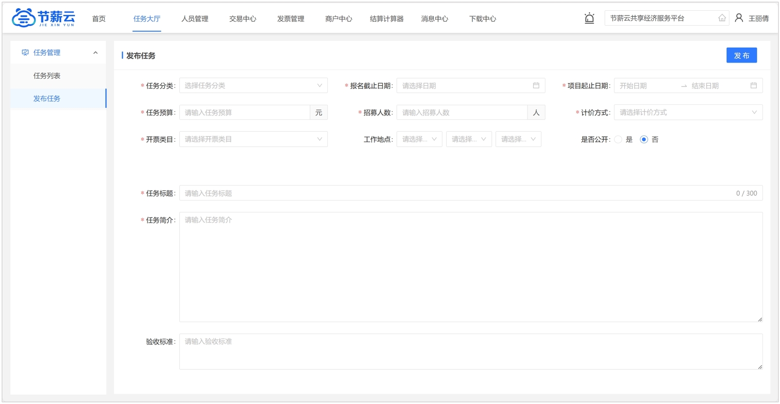 發布任務,添加任務成員及驗收結算驗收付款